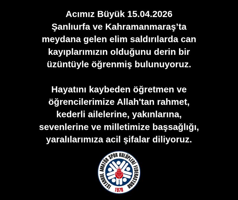 Acımız Büyük 15.04.2026 Şanlıurfa ve Kahramanmaraş’ta meydana gelen elim saldırılarda can kayıplarımızın olduğunu derin bir üzüntüyle öğrenmiş bulunuyoruz.